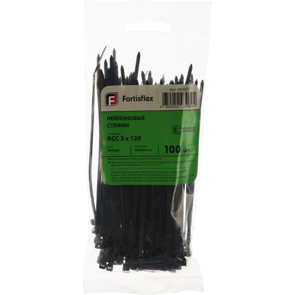 Нейлоновые стяжки FORTISFLEX КСС 3х120 мм черный 100 штук 49407