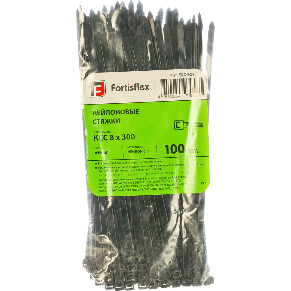 Нейлоновые стяжки FORTISFLEX КСС 8х300 черный 100 штук 50283
