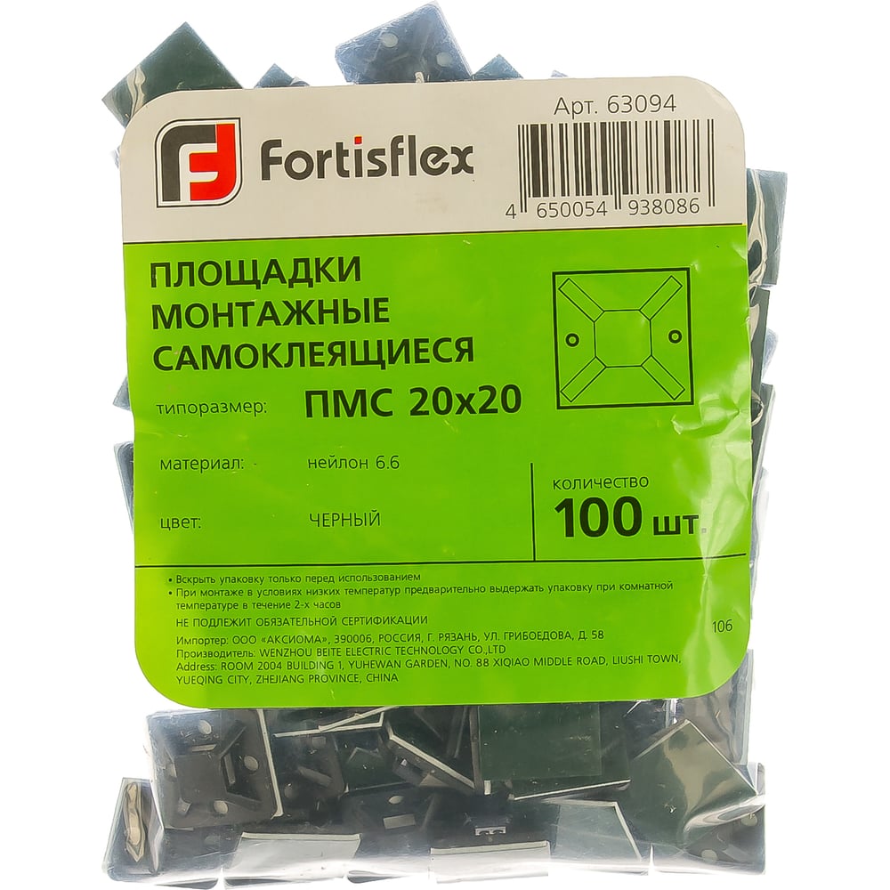 Монтажные самоклеящиеся площадки FORTISFLEX ПМС 20х20 черный 100шт 63094