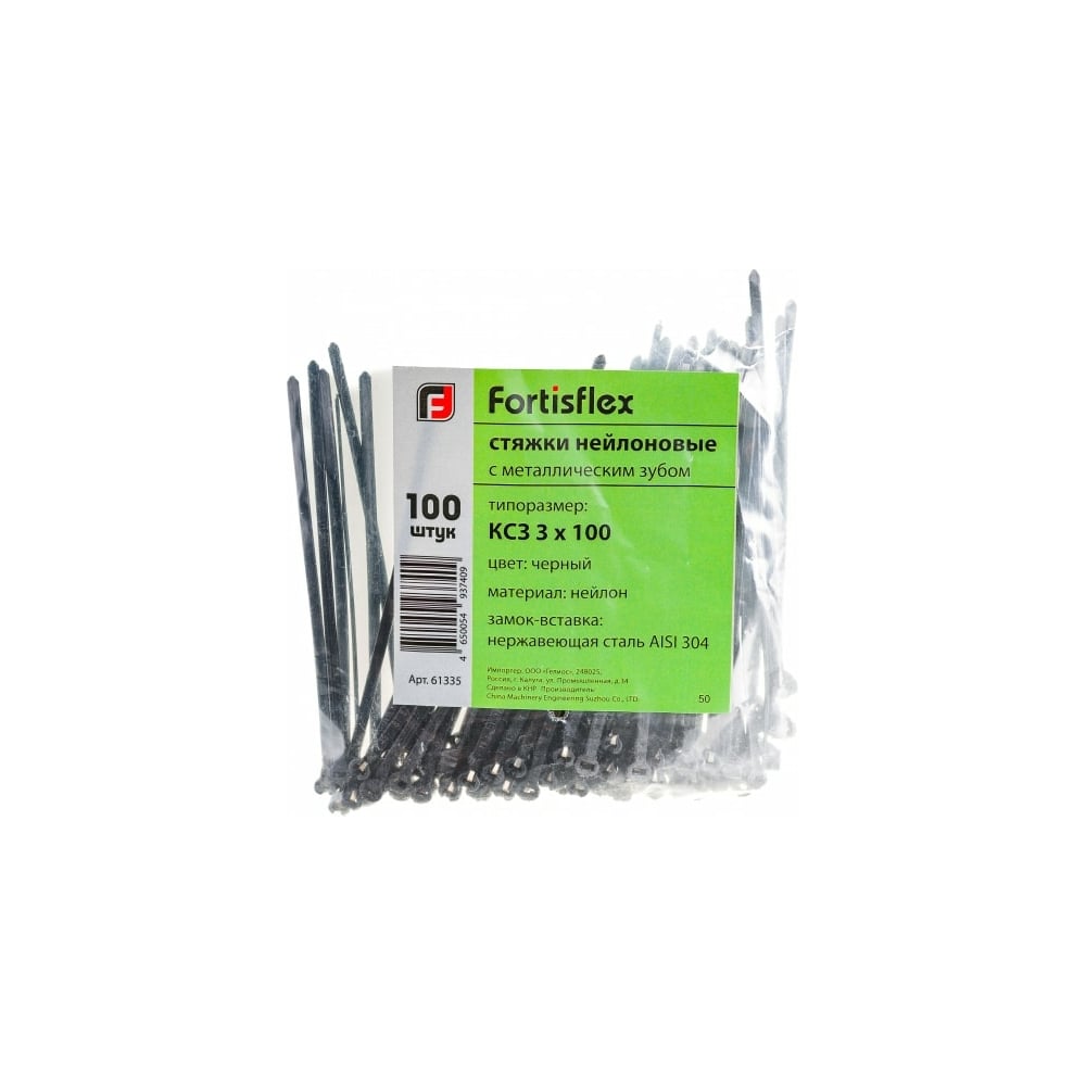 Нейлоновые стяжки с металлическим зубом FORTISFLEX КСЗ 4x200 черный 100 штук 61337