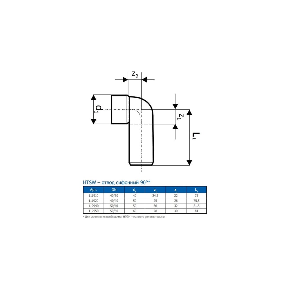 Отвод переходный HTSW (90°) 50/50 Ostendorf 112950