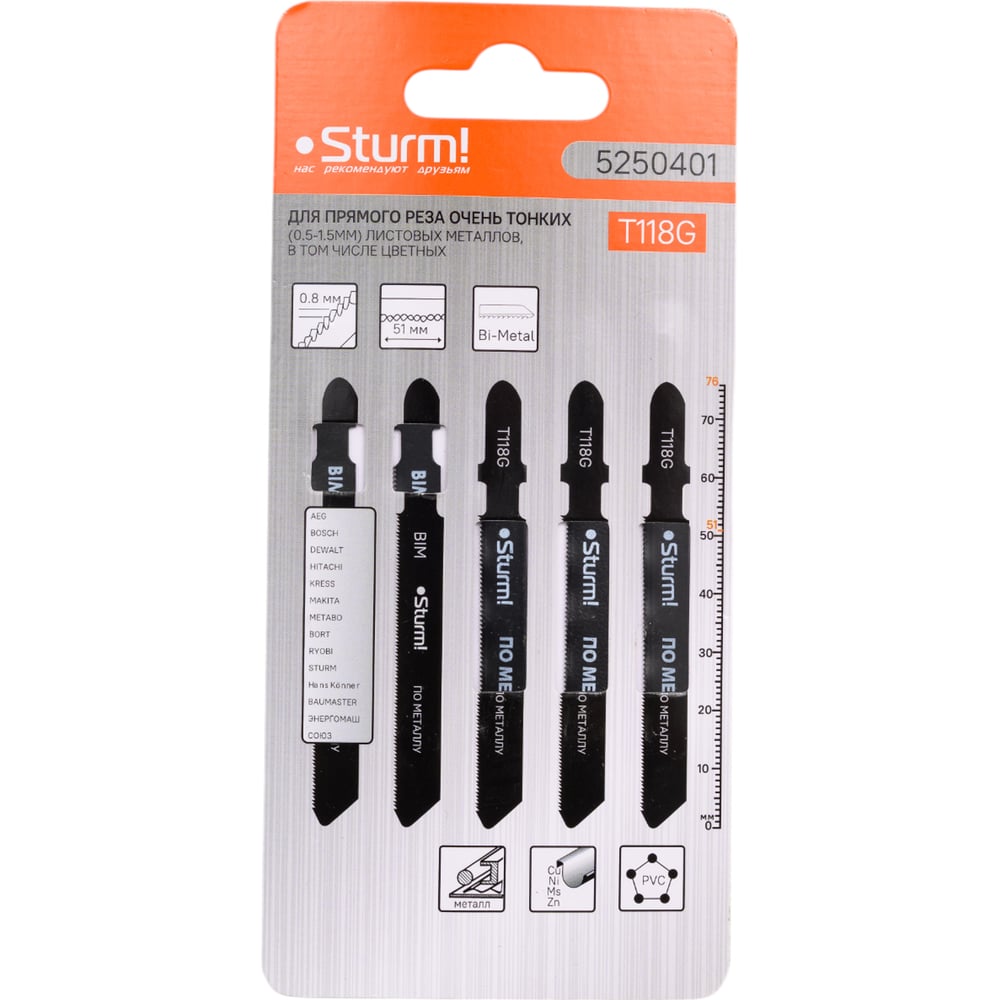 Пилки для лобзика по металлу T118G (5 шт.) Sturm 5250401