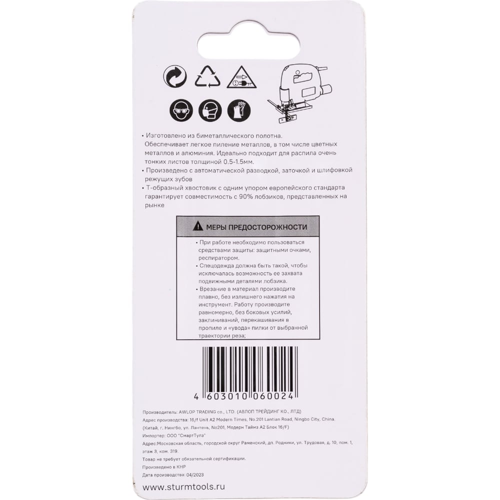 Пилки для лобзика по металлу Sturm T118G 5250401