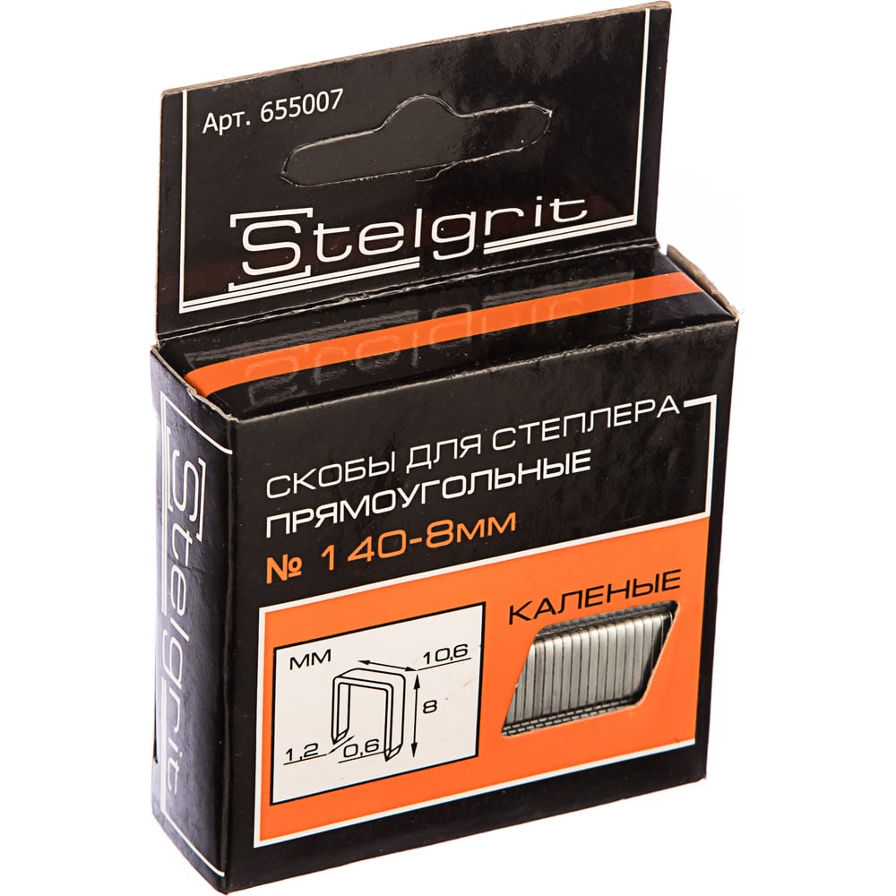 Cкоба каленая (1000 шт; 8x1.2 мм; Тип 140) для мебельного степлера Stelgrit 655007