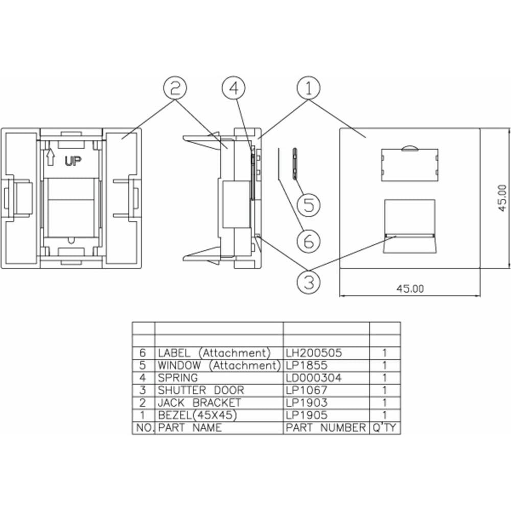 Вставка 45x45 аналог Mosaic для 1 модуля формата Keystone Jack со шторкой Hyperline SIP2-1K-M45-45 35207