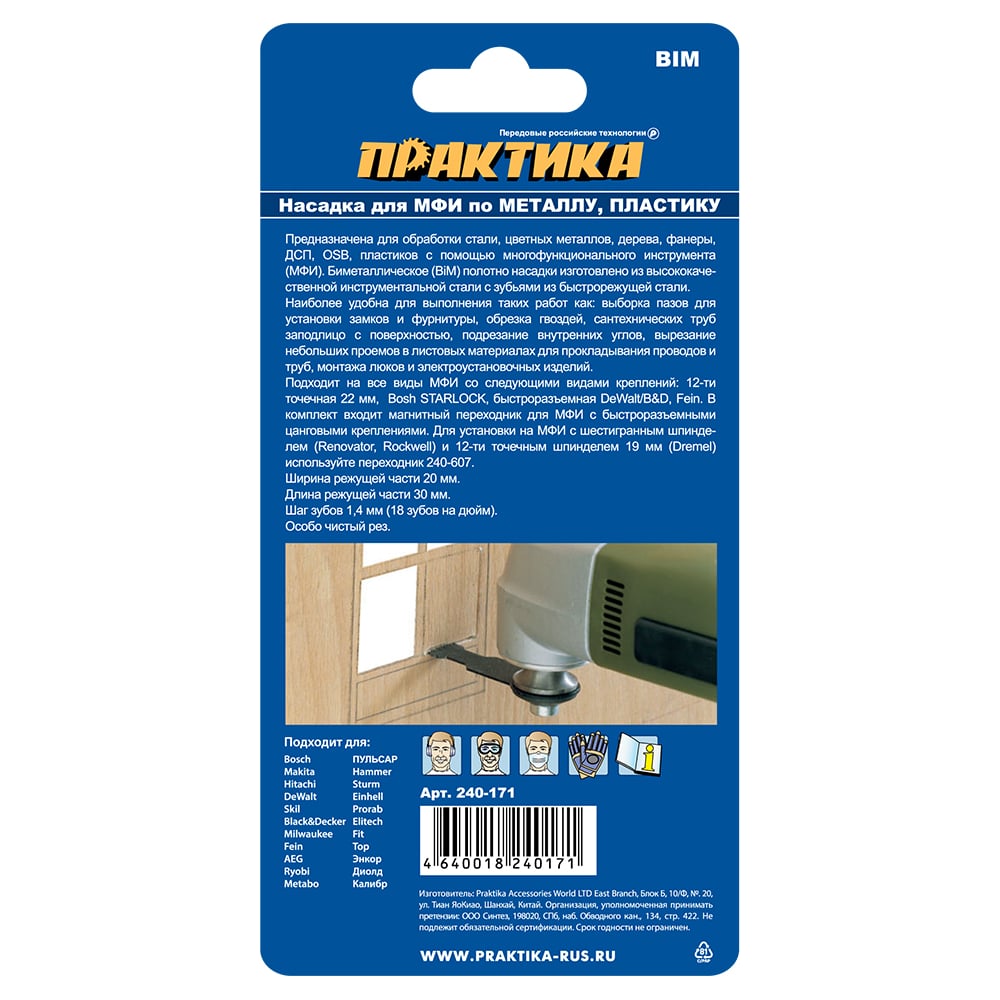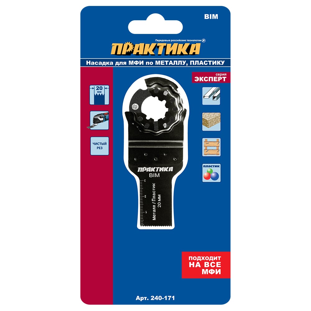 Режущая насадка для МФИ, по металлу и дереву ПРАКТИКА пазовая прямая, BiM, 20 мм, мелкий зуб 240-171