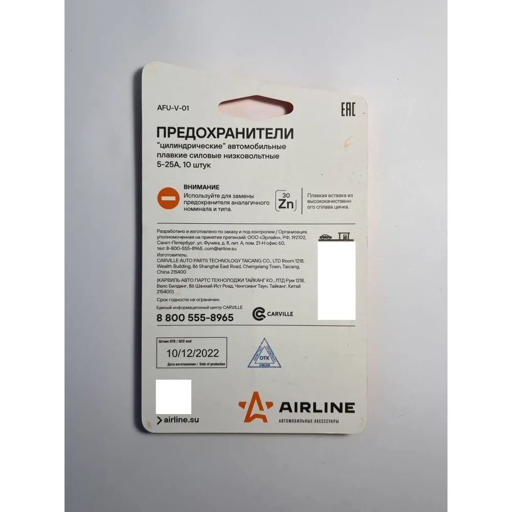 Предохранители "цилиндрические" Airline в блистере 10шт 5-25А AFU-V-01