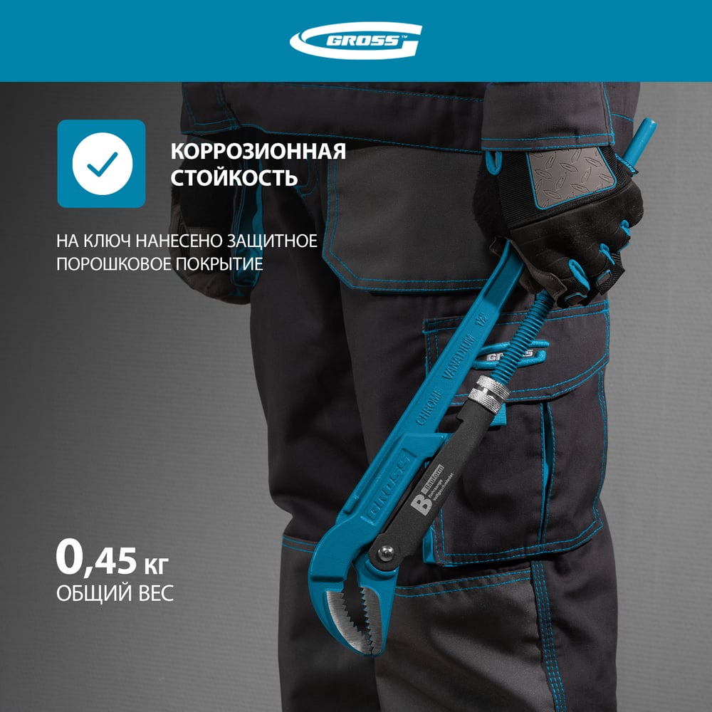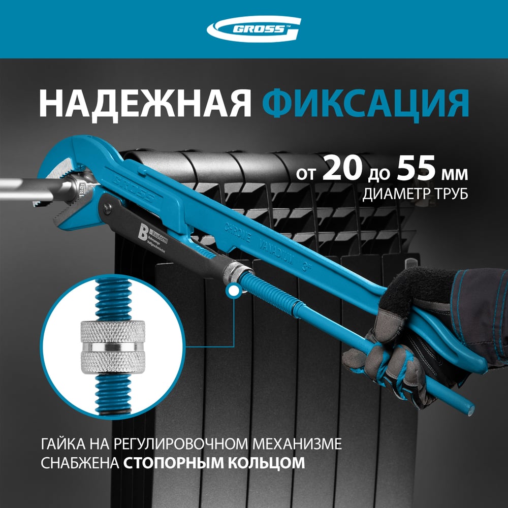 Трубный рычажный ключ GROSS №2, 1,5", цельнокованый, CrV, тип "B" 15622