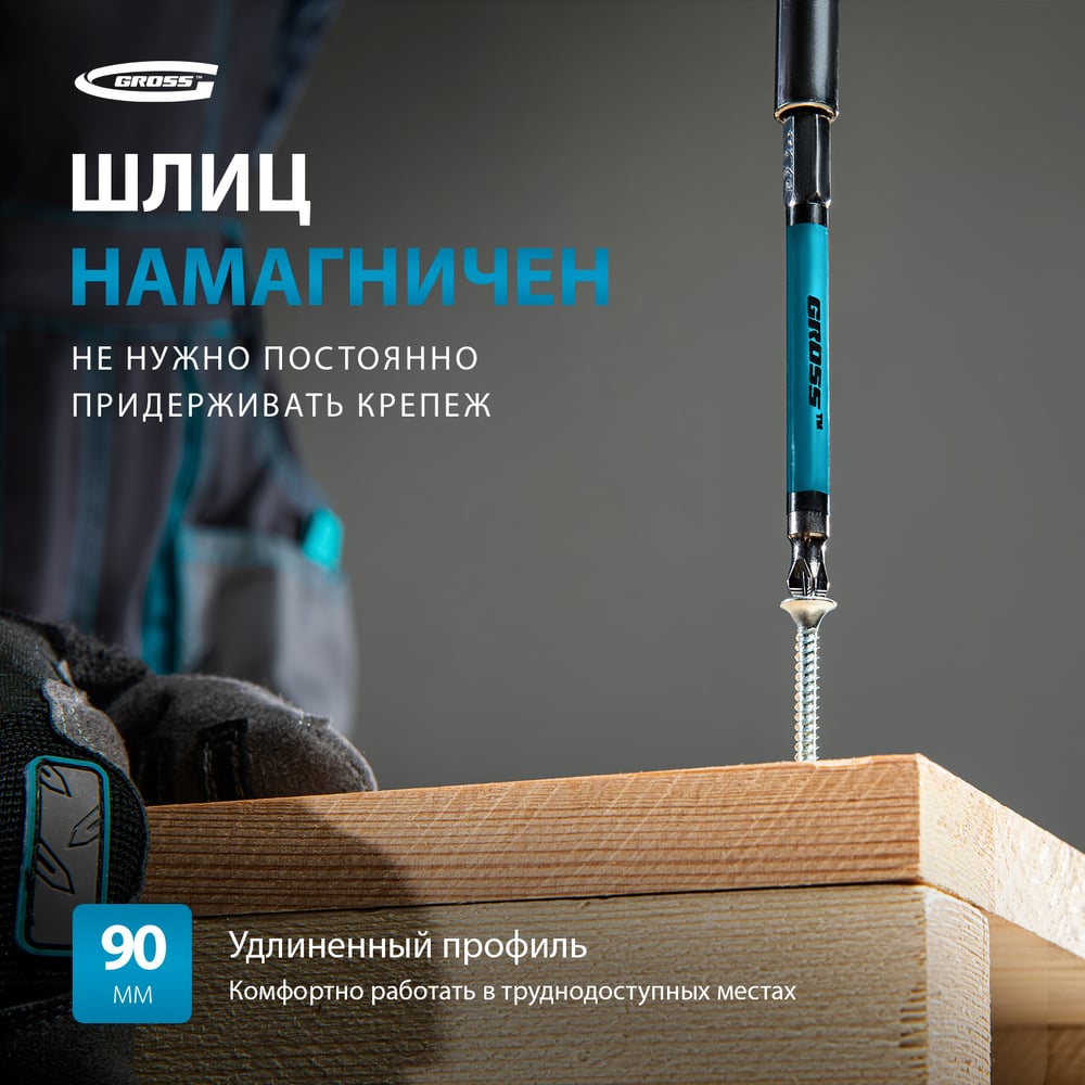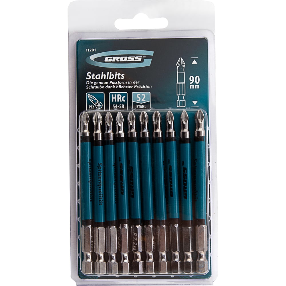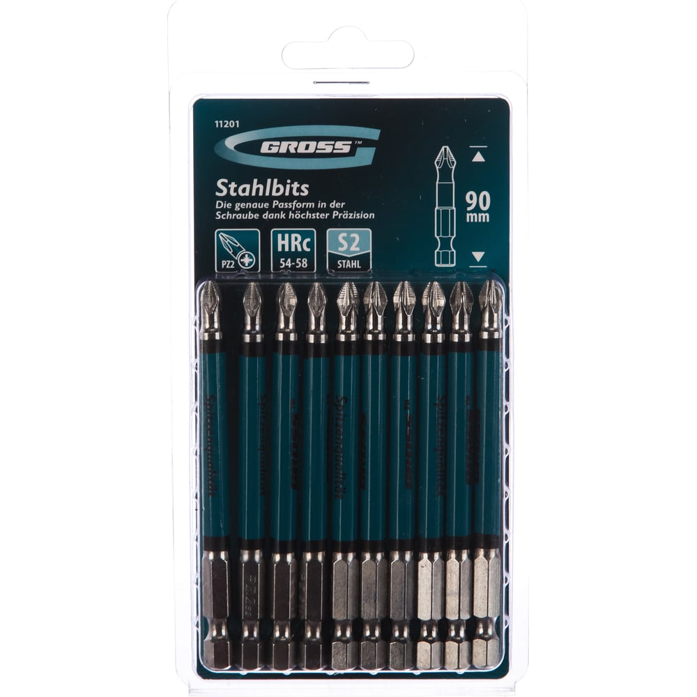 Набор бит (PZ2 х 90 мм, сталь S2) 10 шт. GROSS 11201