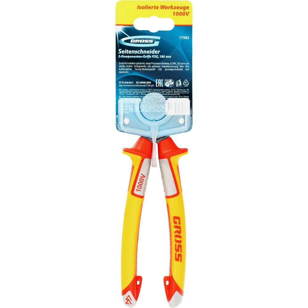 Бокорезы GROSS 180 мм, трехкомпонентные диэлектрические рукоятки, до 1000 В 17582