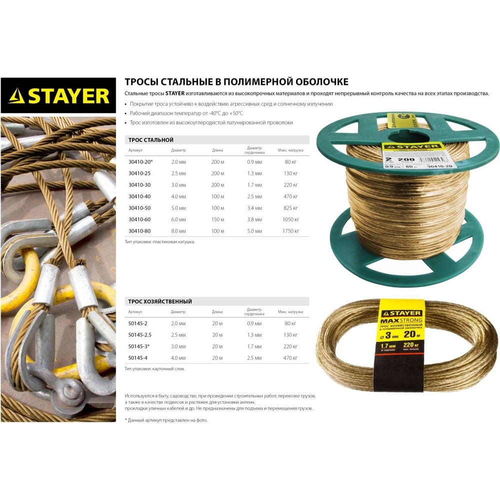 Хозяйственный стальной трос STAYER 20 м в полимерной оболочке 50145-2