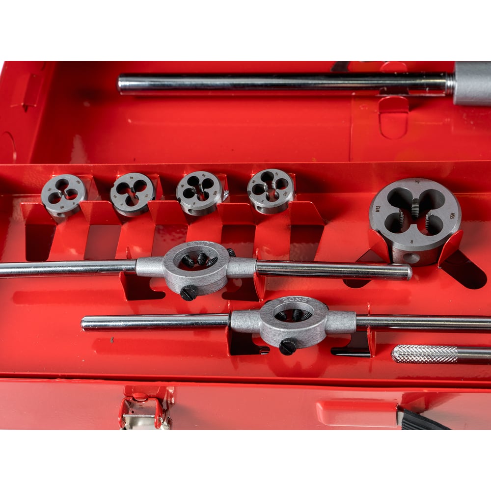 | Комплектация | метчики, плашки, вороток, плашкодержатель, отвертка, резьбомер |