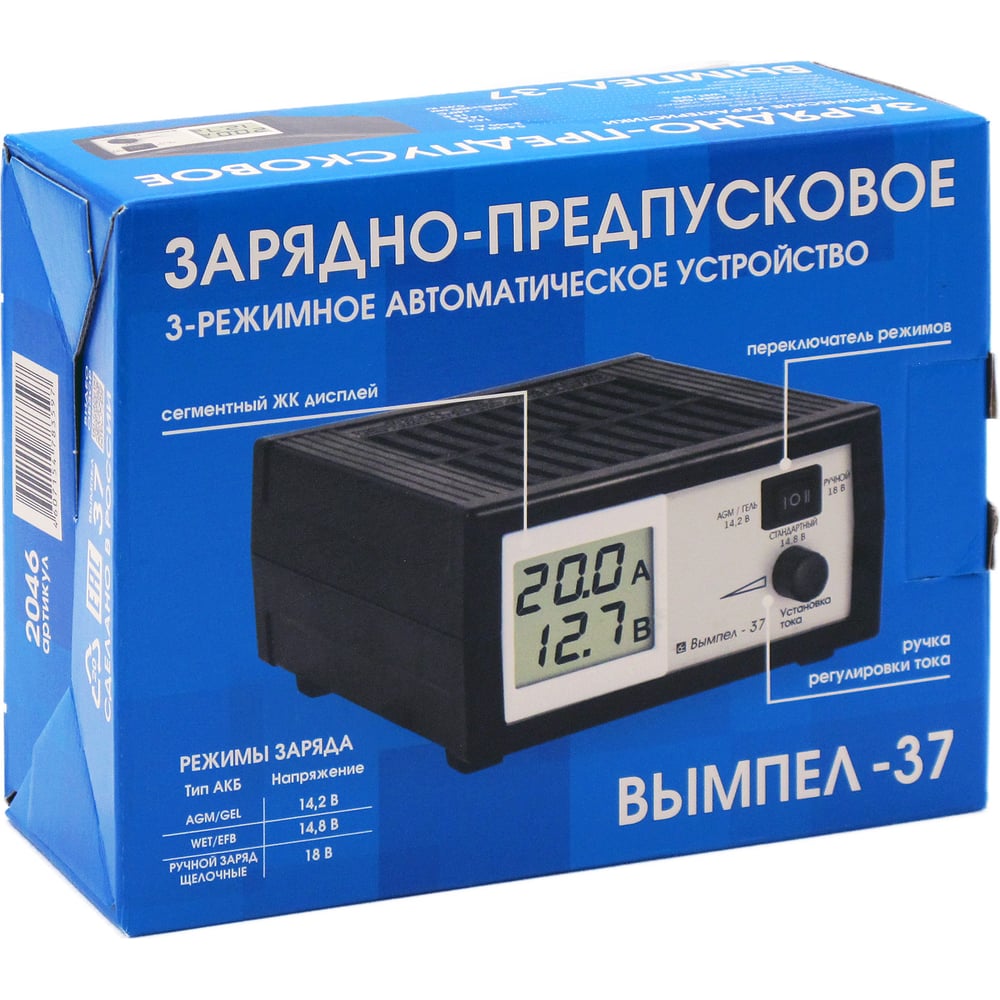 Зарядное устройство Вымпел Вымпел-37 автомат, 0-20А, 14.2/14.8/18 В, ЖК индикатор 2046
