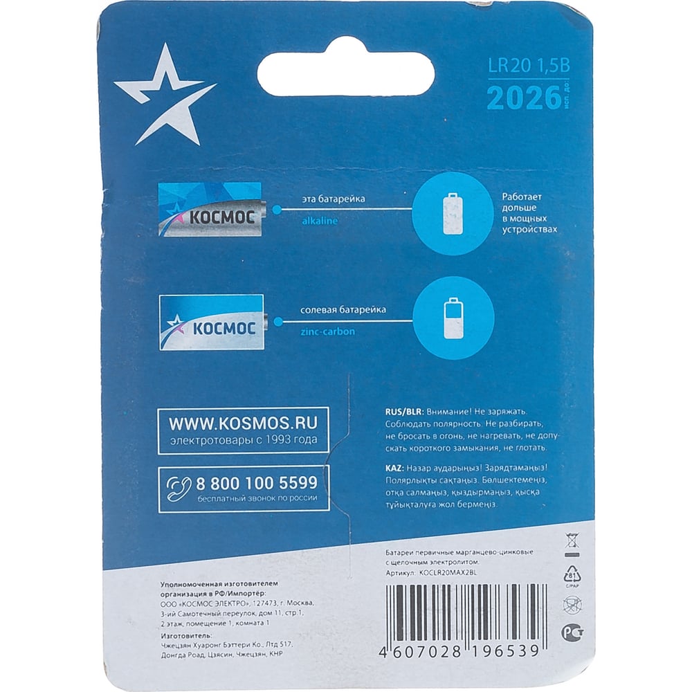 Элемент питания LR LR20 Максимум BP2 КОСМОС KOCLR20MAX2BL