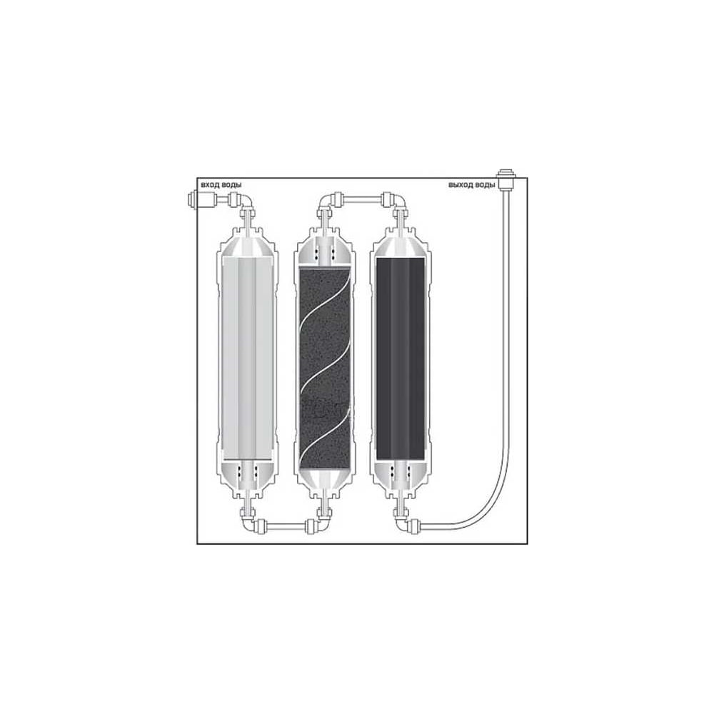 Габариты без упаковки 194х66х333 мм Материал полипропилен, кокосовый уголь, ионнообменная смола Вид комплект картриджей Класс товара Бытовой Вес нетто 1.3 кг Max давление 16 атм Ионный обмен нет Мембранная очистка нет Механическая очистка да Обезжелезивание нет Сорбционная очистка да Умягчение нет Обеззараживание нет Фильтрация от механическая очистка, сорбция Ресурс модуля 7000 л Скорость фильтрации 2 л/мин Подходит для горячей воды нет Размер фильтруемых частиц 5 мкм Температура очищаемой воды 5-35 °С Тип сменного модуля 10InLine Количество ступеней очистки 3 Комплект картриджей да Подключение к водопроводу нет Очищение от хлора да Защита от бактерий нет