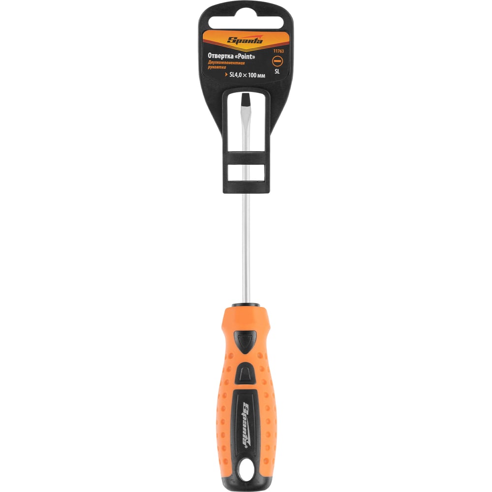 Отвертка SPARTA "Point", SL4,0x100 мм, CrV, 2-х компонентная рукоятка// 11763