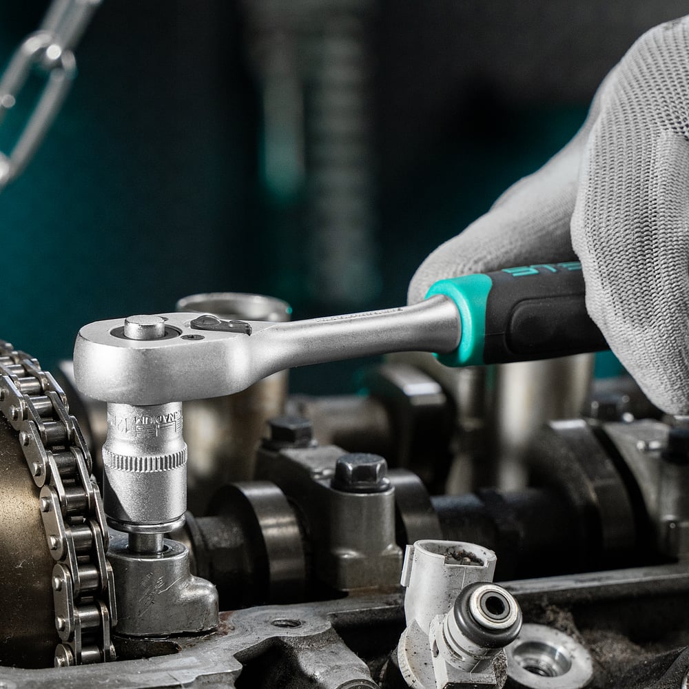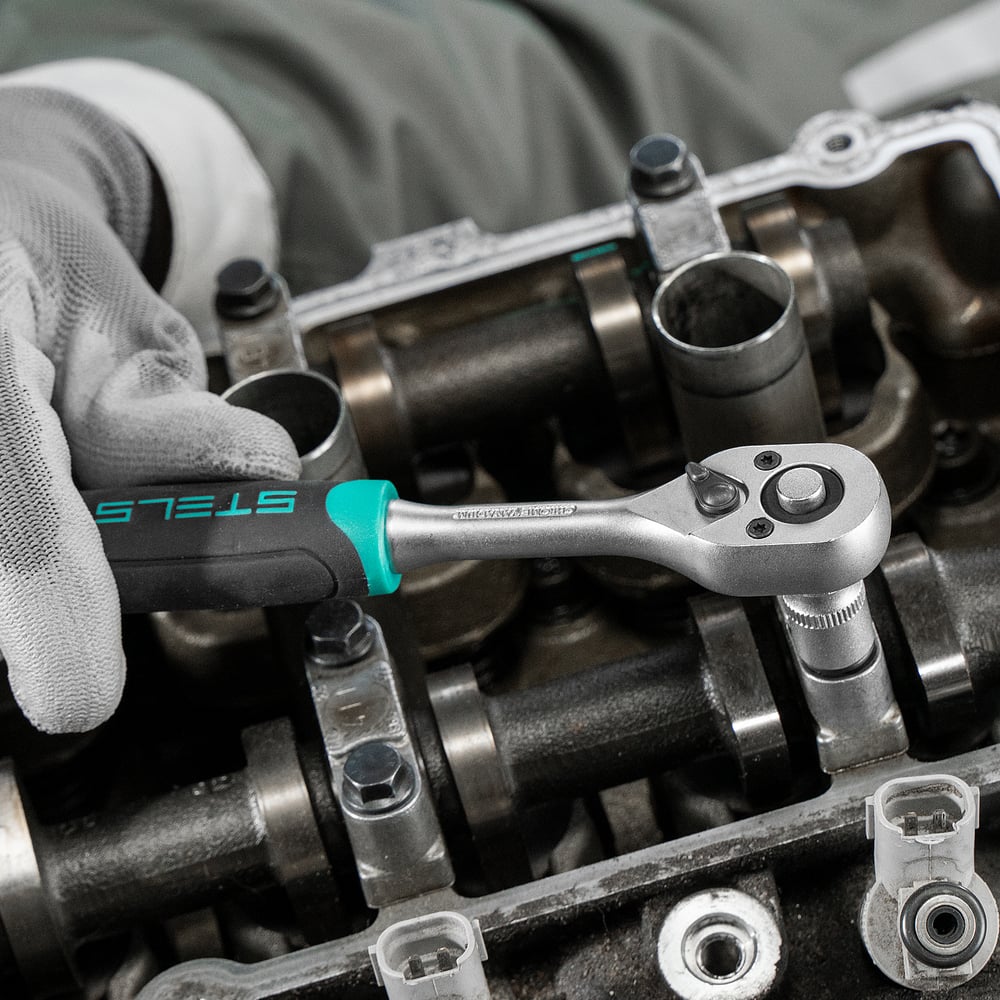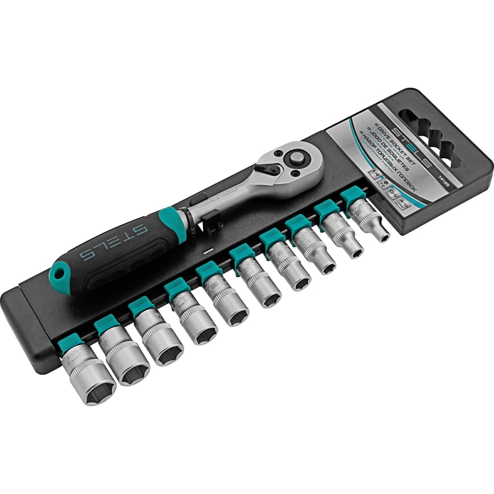 Набор торцевых головок, 1/4", головки 4-13 мм, с трещоточным ключом, CrV, 11шт STELS 14125