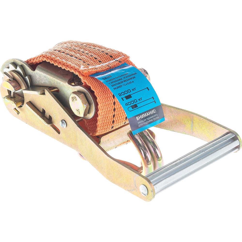 Багажный ремень с крюками STELS 0,05x12 м, с храповым механизмом, Россия 54388