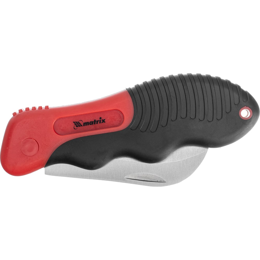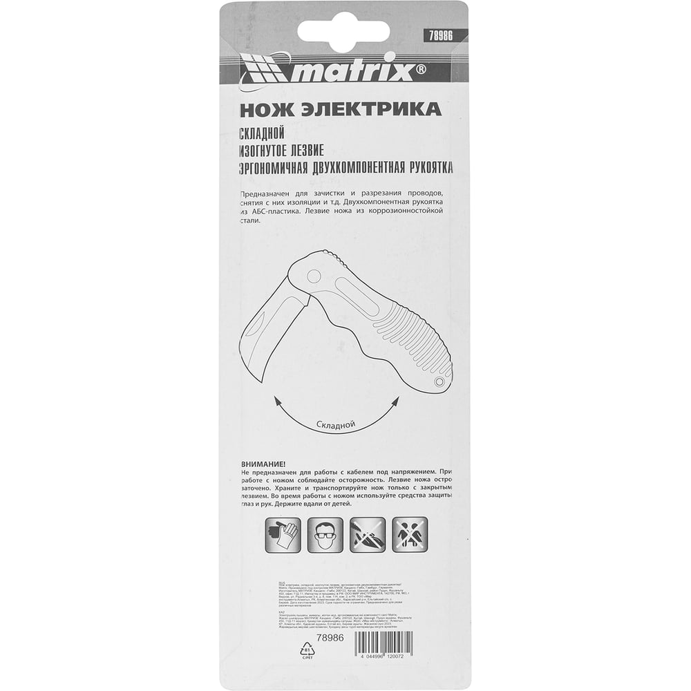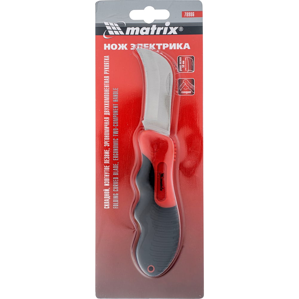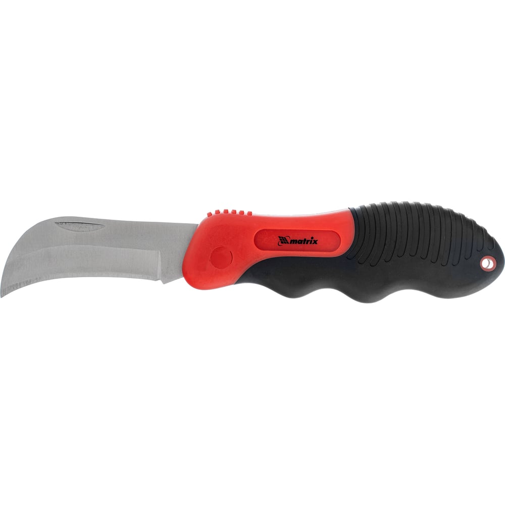 Складной нож электрика, изогнутое лезвие, эргономичная двухкомпонентная рукоятка MATRIX 78986