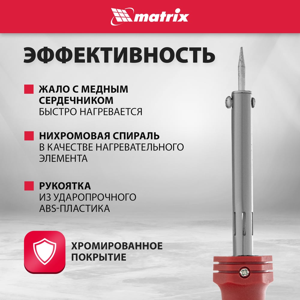 Паяльник, MATRIX пласт. ABS с пониж. теплопровод, медный наконечник с долговеч. покрытием,220В,60W// 913036