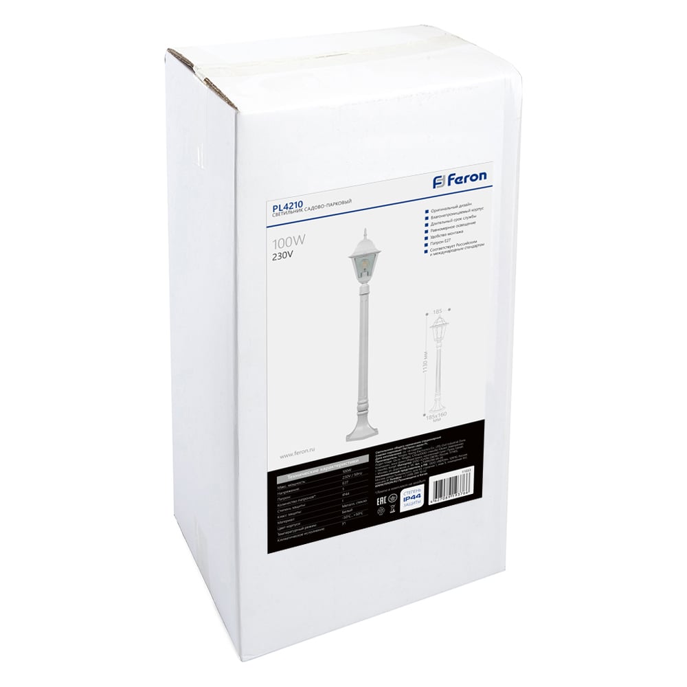 Садово-парковый светильник FERON столб 100W E27 230V, белый 4210 11033