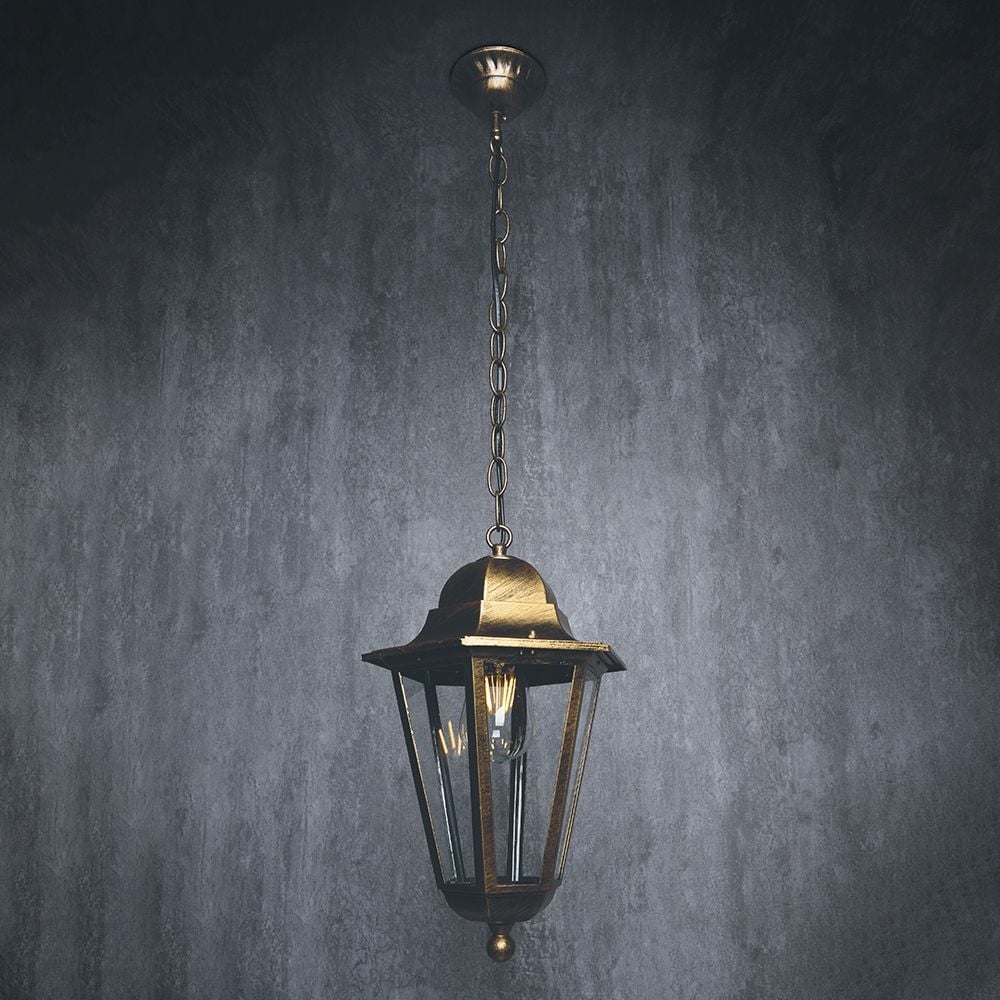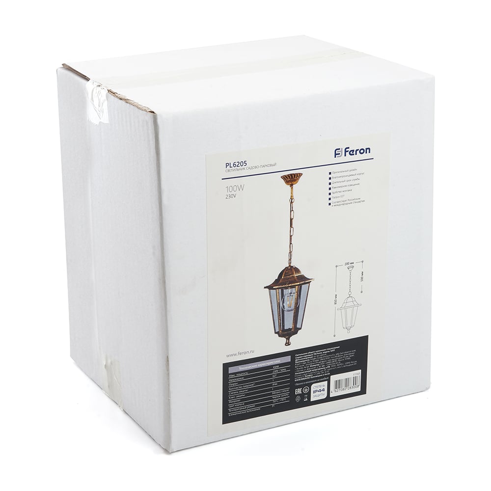 Садово-парковый светильник FERON 6205/PL6205 шестигранный на цепочке 100W E27 230V черное золото 11143
