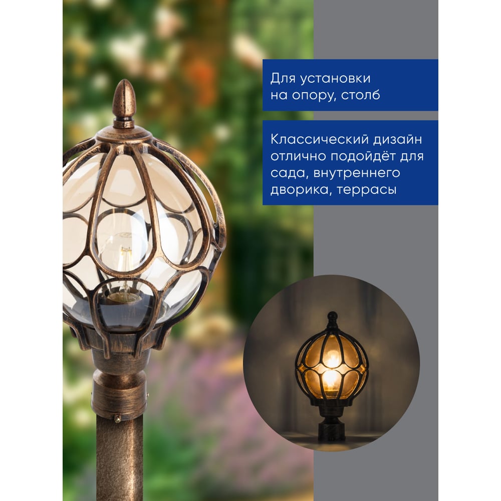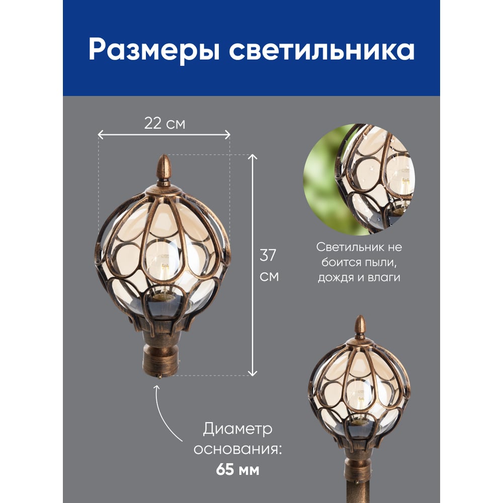 Садово-парковый светильник, круглый на столб 60W 230V E27, черное золото FERON PL3803 11360