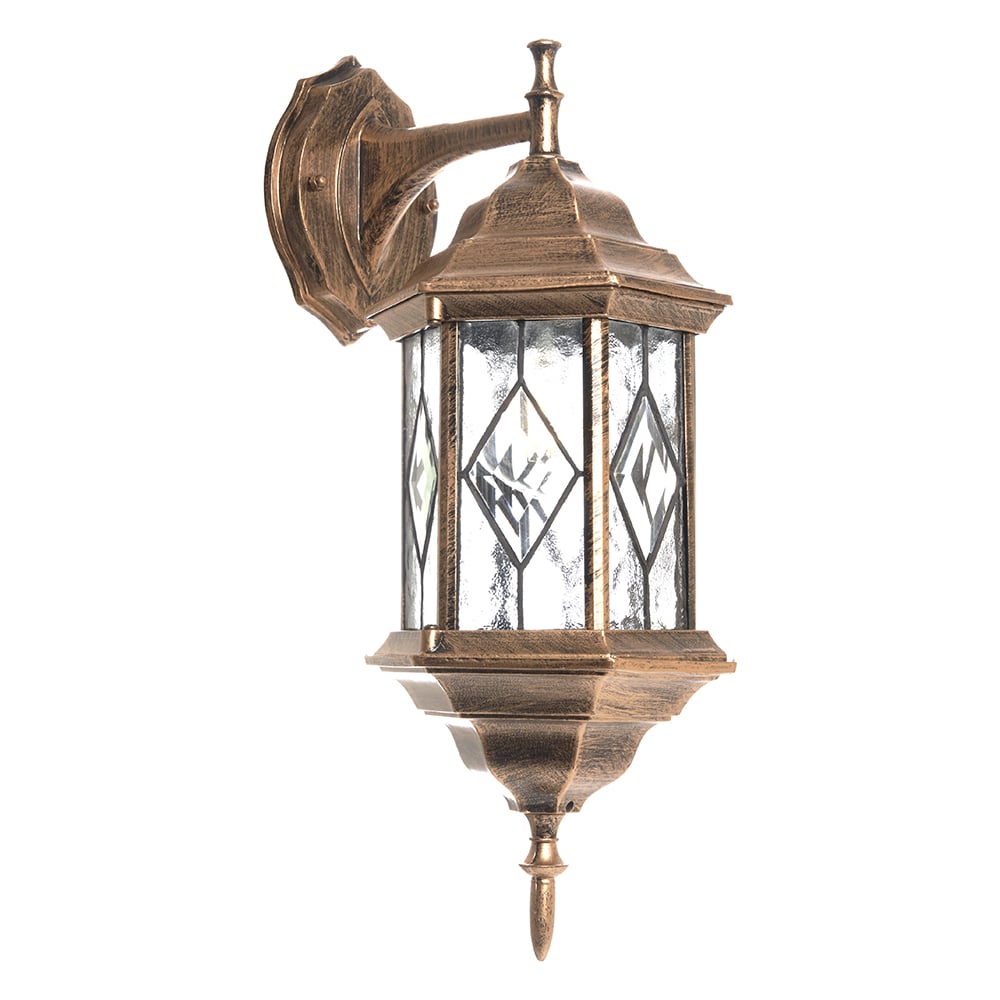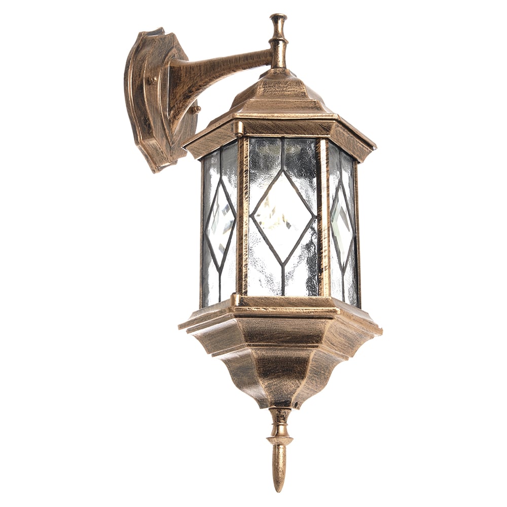 Садово-парковый светильник, шестигранный на стену вниз 60W E27 230V, черное золото Feron PL122 11344