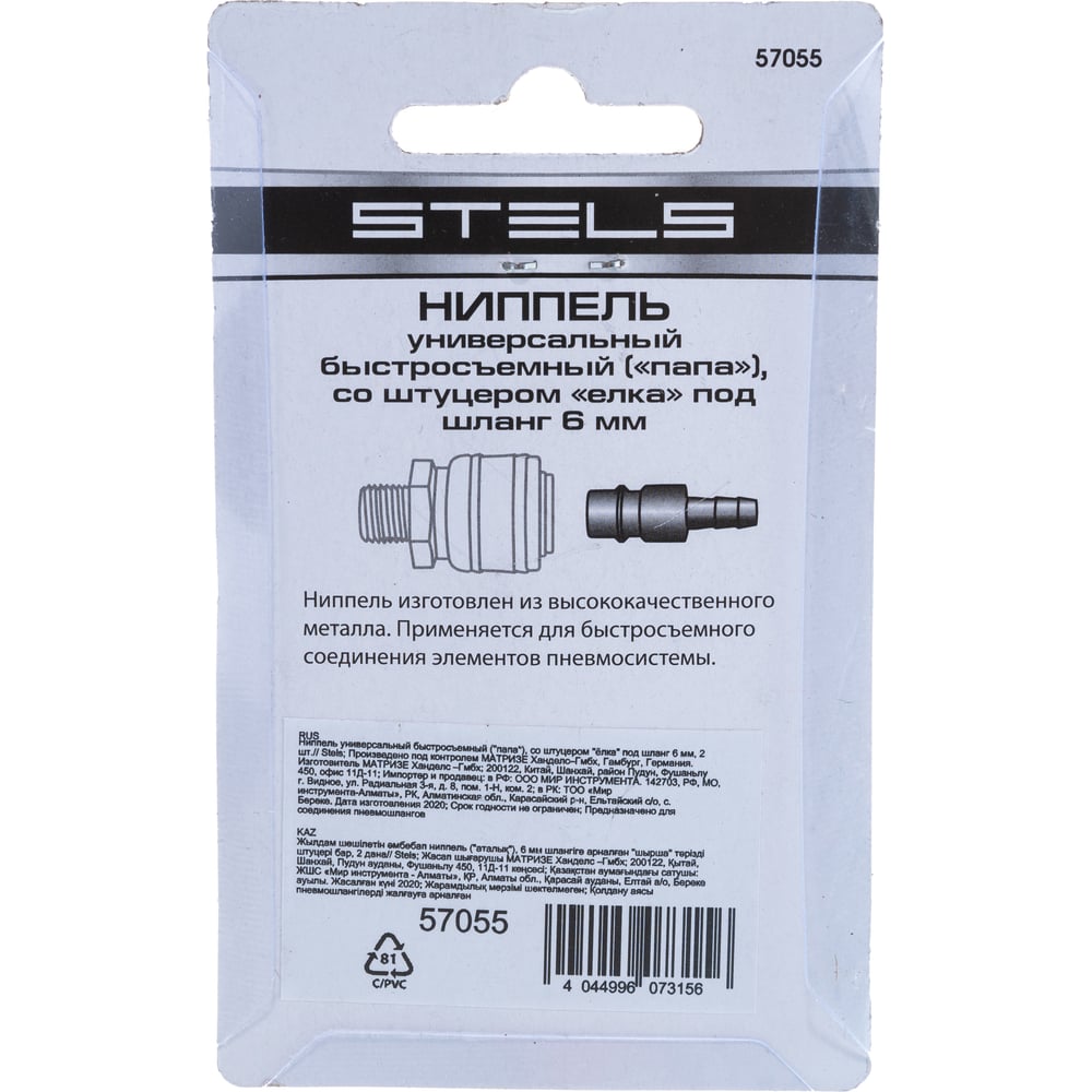 Ниппель универсальный быстросъемный (папа "рапид" - "елка" 6 мм) 2 шт. Stels 57055
