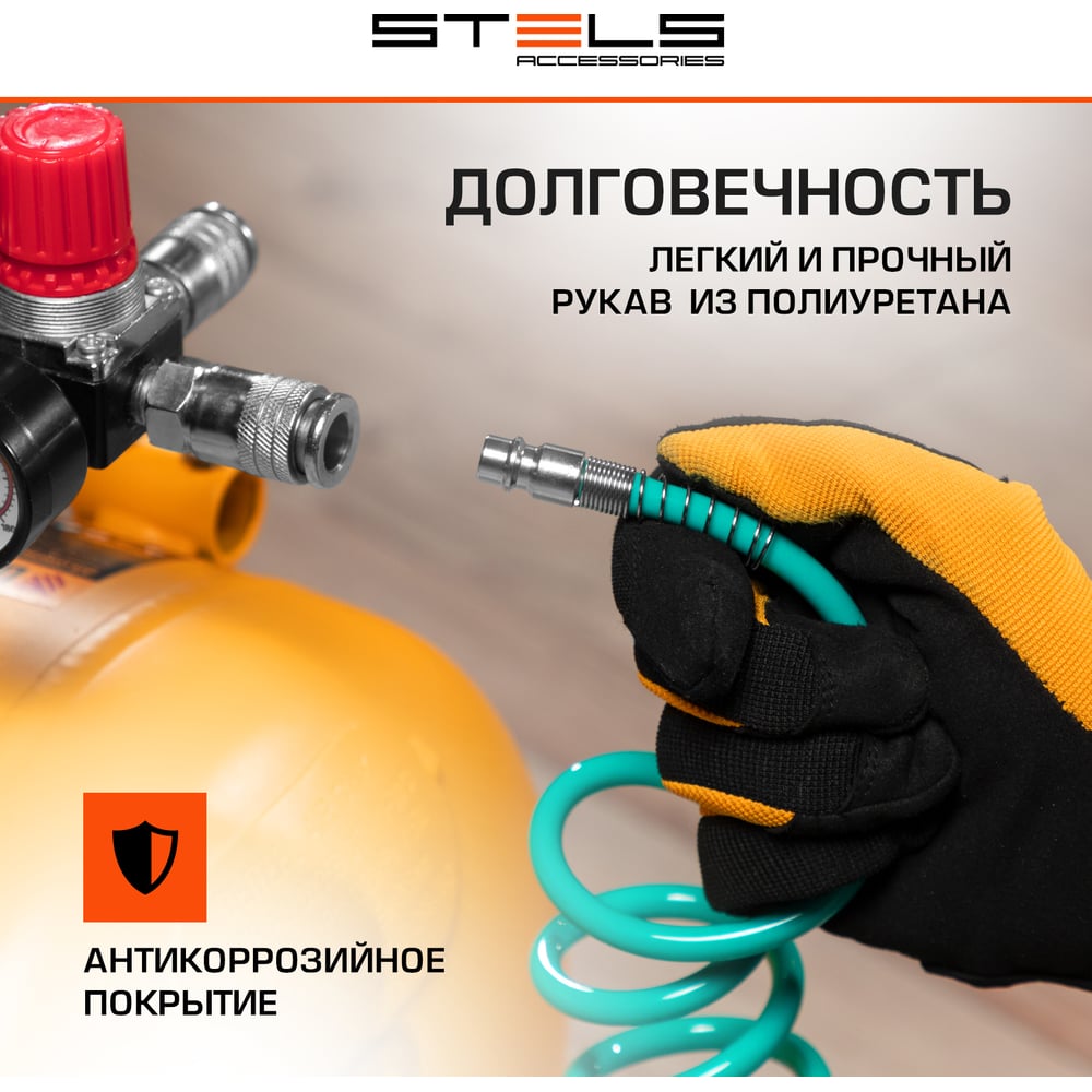 Полиуретановый спиральный шланг с быстросъемными соединениями (6х8 мм; 10 м) Stels 57007