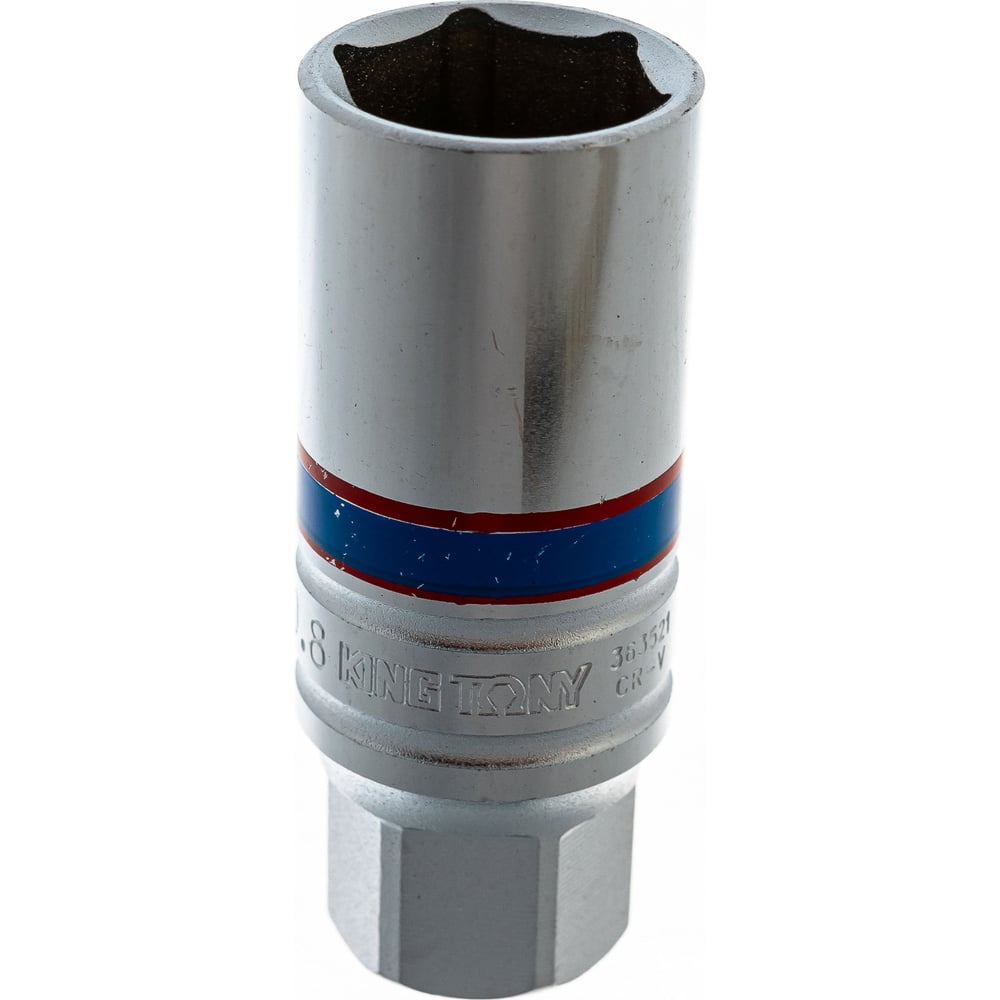 Свечная шестигранная головка с резиновым фиксатором 3/8", 21мм, 70мм KING TONY 363521