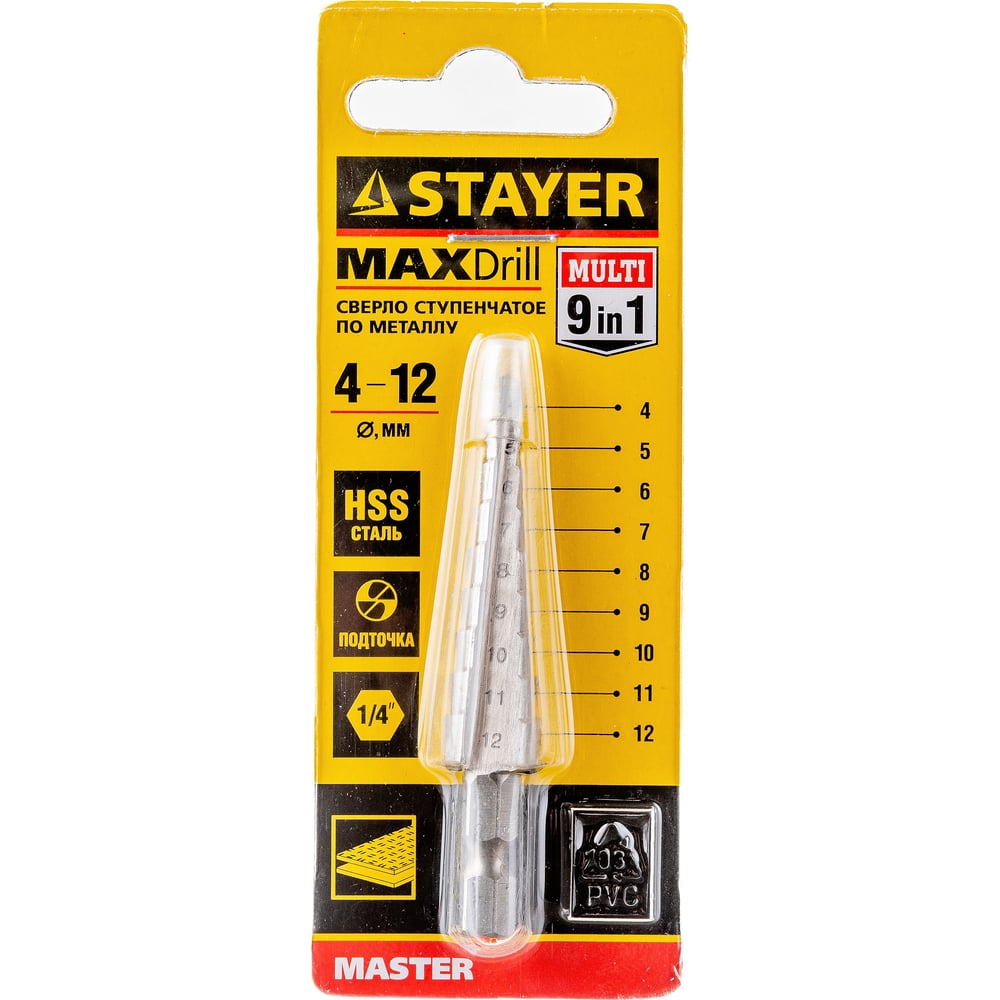 Ступенчатое сверло по сталям и цветным металлам STAYER MASTER 29660-4-12-9
