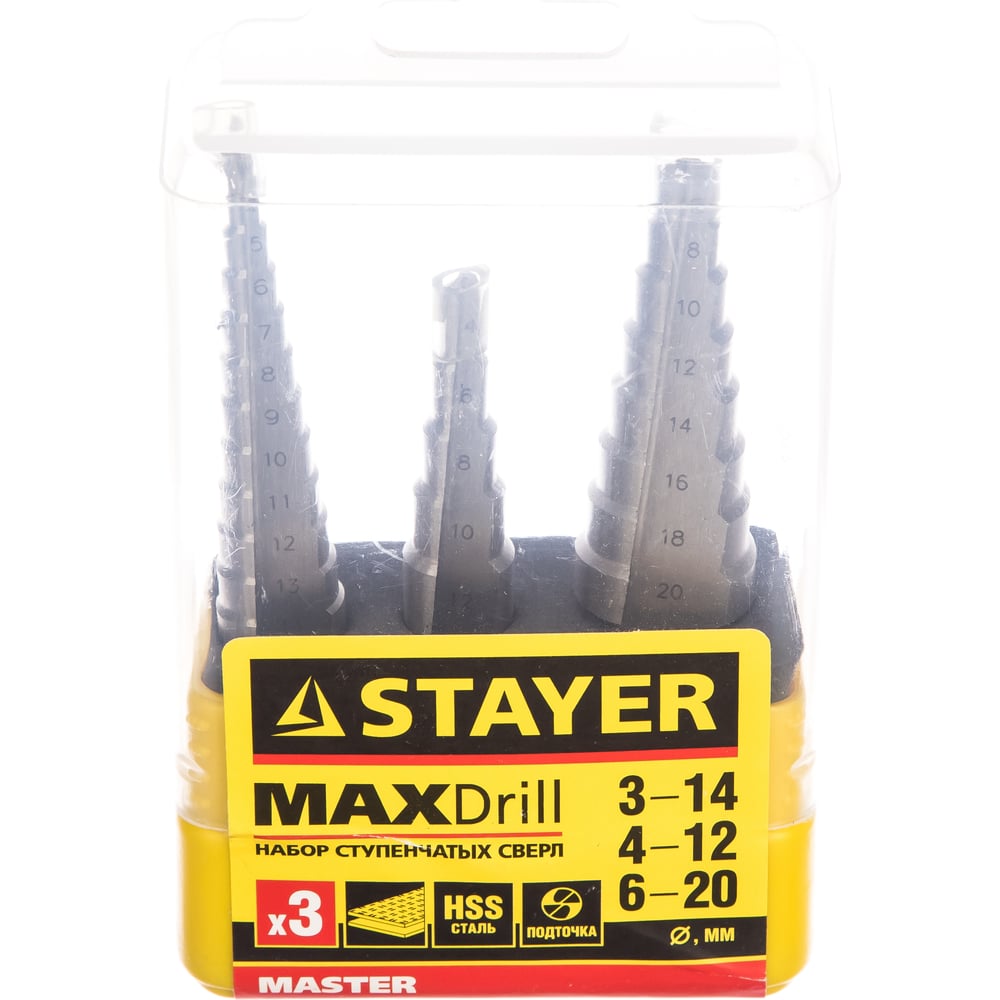 Набор ступенчатых сверл по сталям и цветным металлам STAYER MASTER 29660-3-20-H3