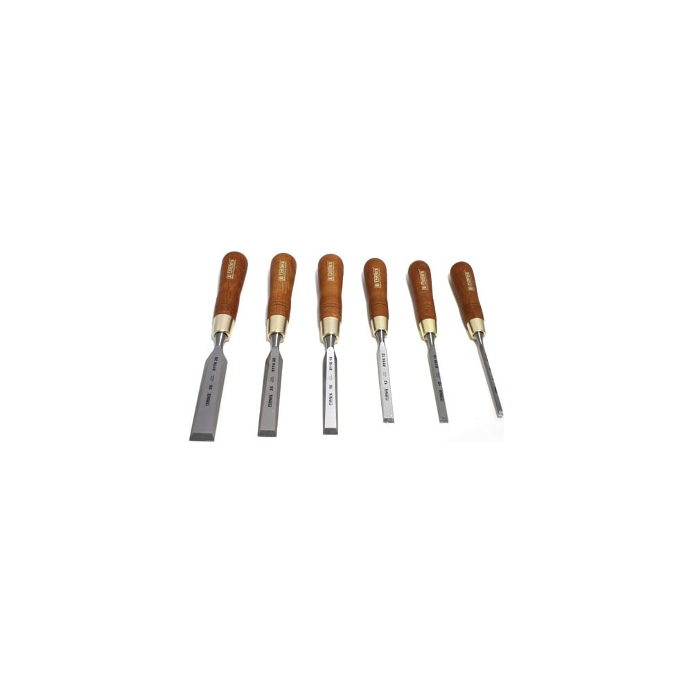 Набор из 6 плоских стамесок с ручкой 6, 10, 12, 16, 20, 26мм в деревянном кейсе NAREX WOOD LINE PLUS 853200