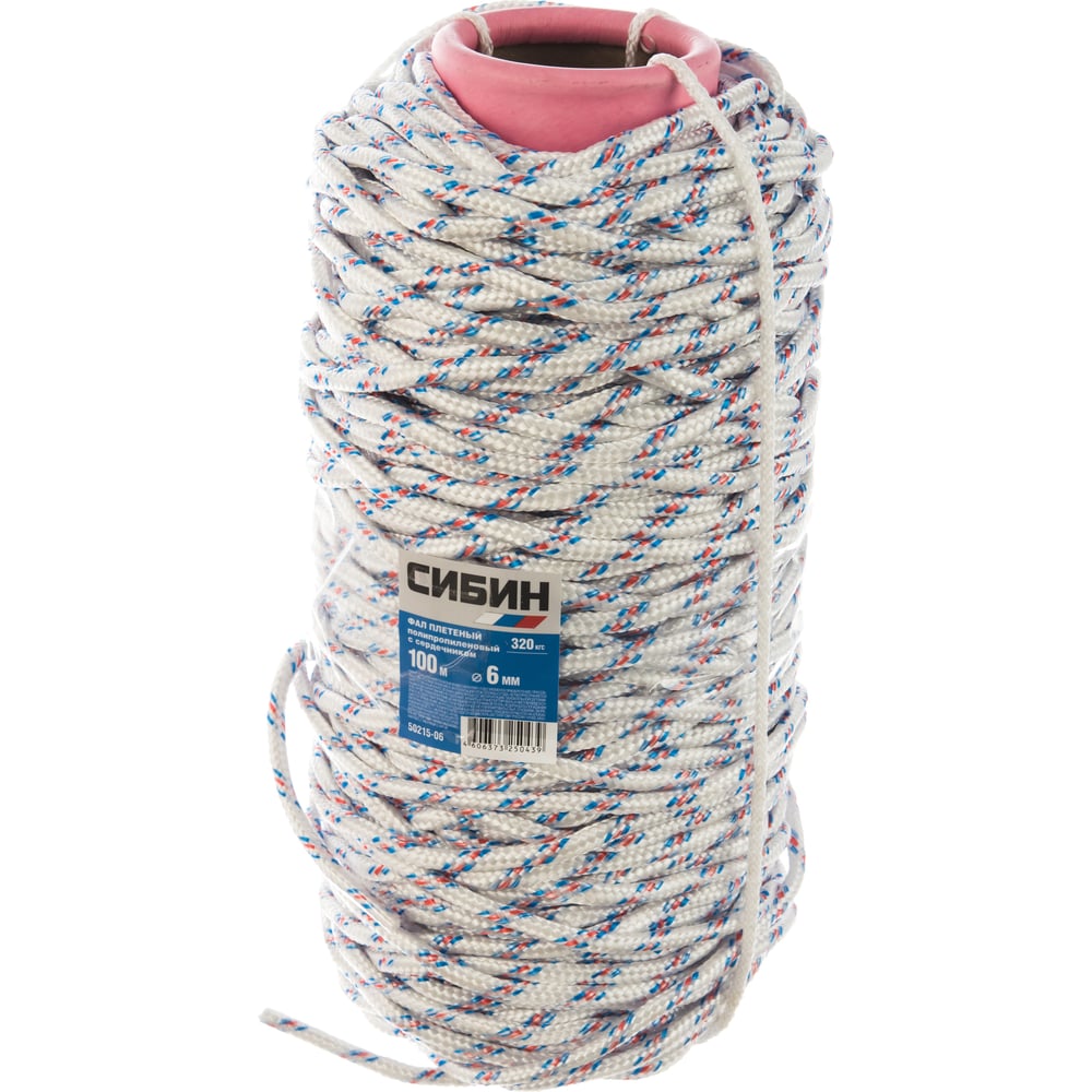 Плетёный полипропиленовый 16-прядный фал с полипропиленовым сердечником, диаметр 6мм, бухта 100м, 320кгс СИБИН 50215-06