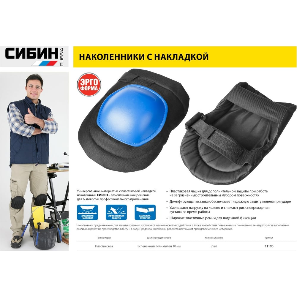 Универсальные наколенники, матерчатые, пластиковая накладка СИБИН 11196