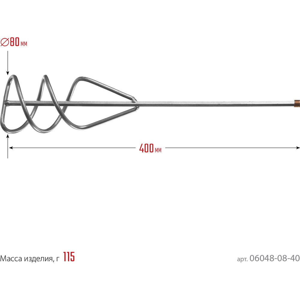 Миксер для песчано-гравийных смесей (80х400 мм, шестигранный хвостовик) СИБИН 06048-08-40