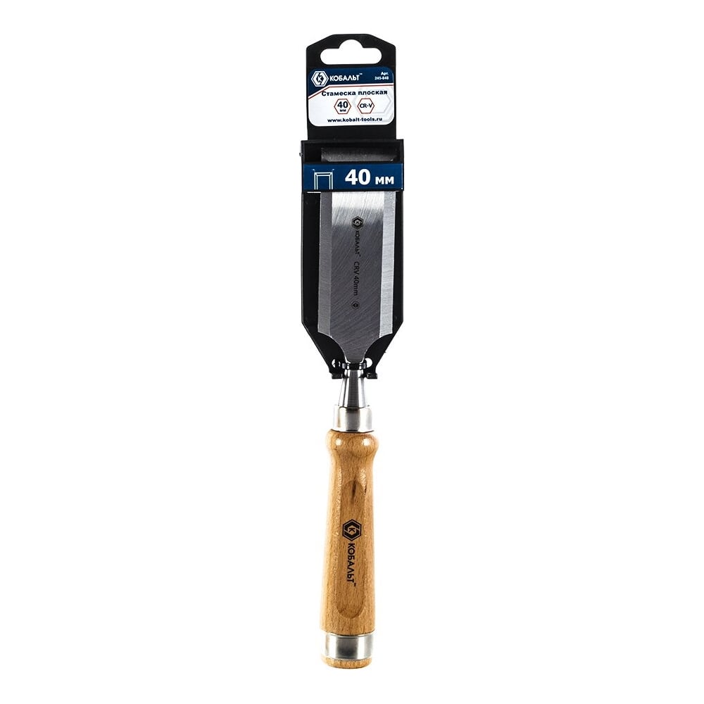 Плоская стамеска 40х140мм, CR-V, деревянная рукоятка КОБАЛЬТ 245-848
