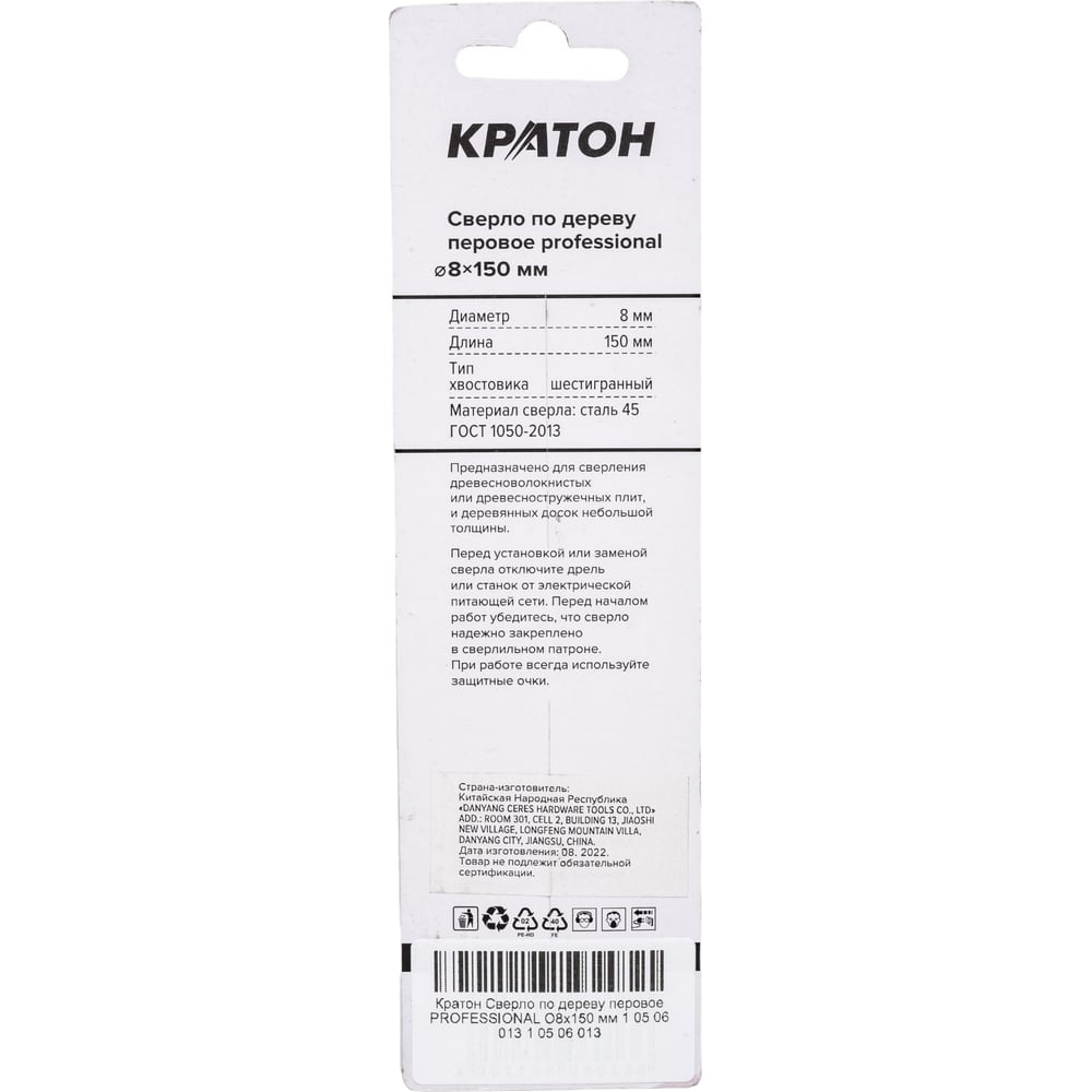 Сверло по дереву перовое PROFESSIONAL (8х150 мм) Кратон 1 05 06 013