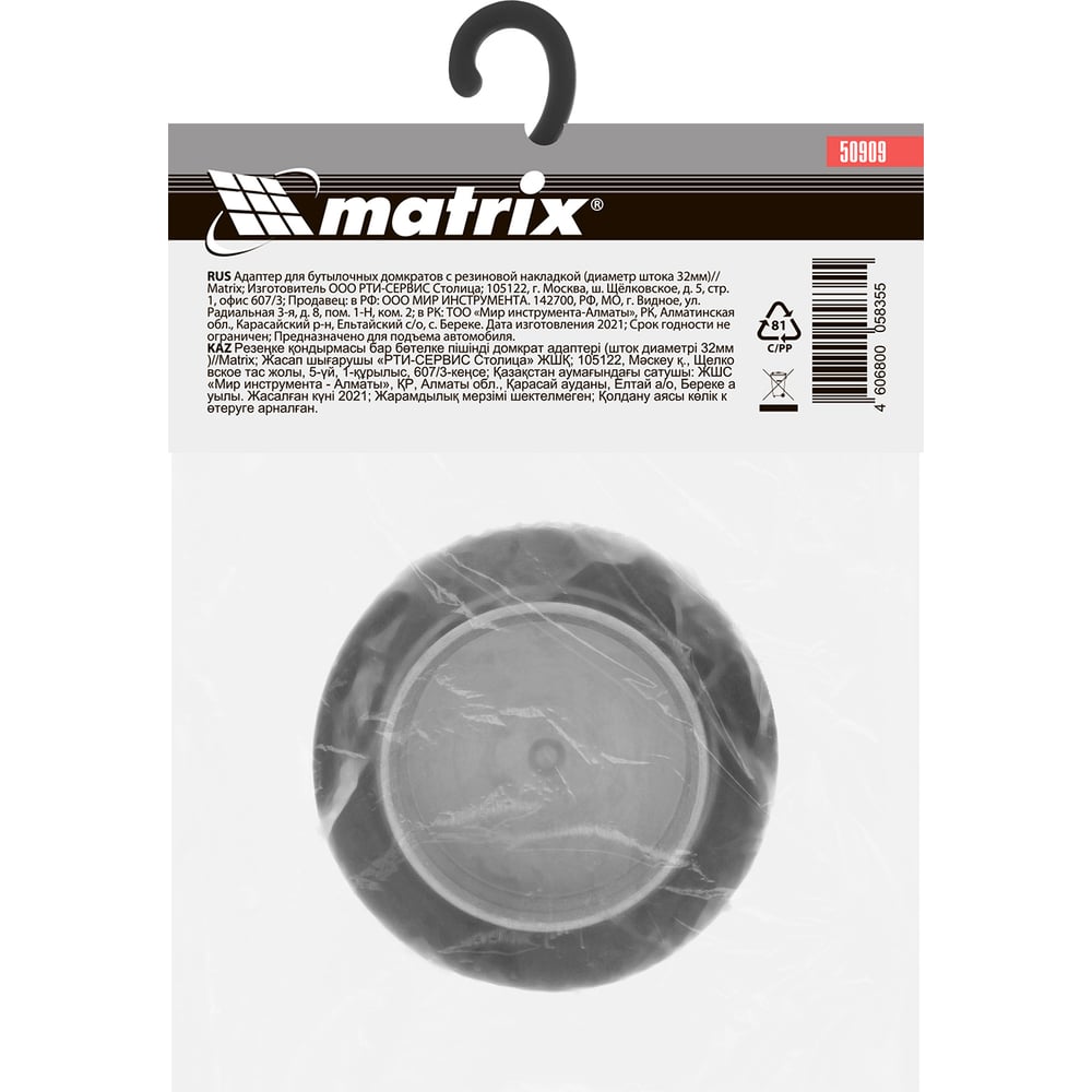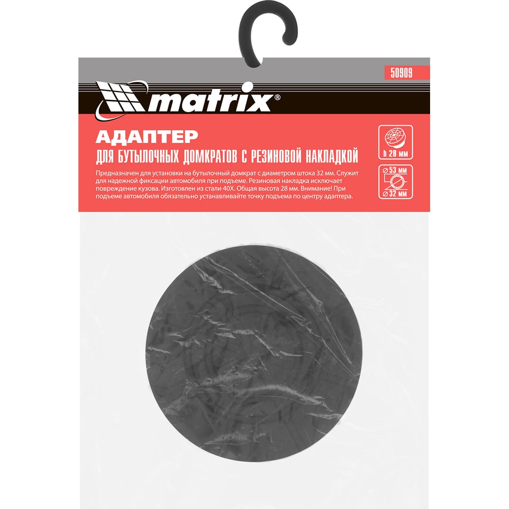Адаптер для бутылочных домкратов с резиновой накладкой, диаметр штока 32мм MATRIX 50909