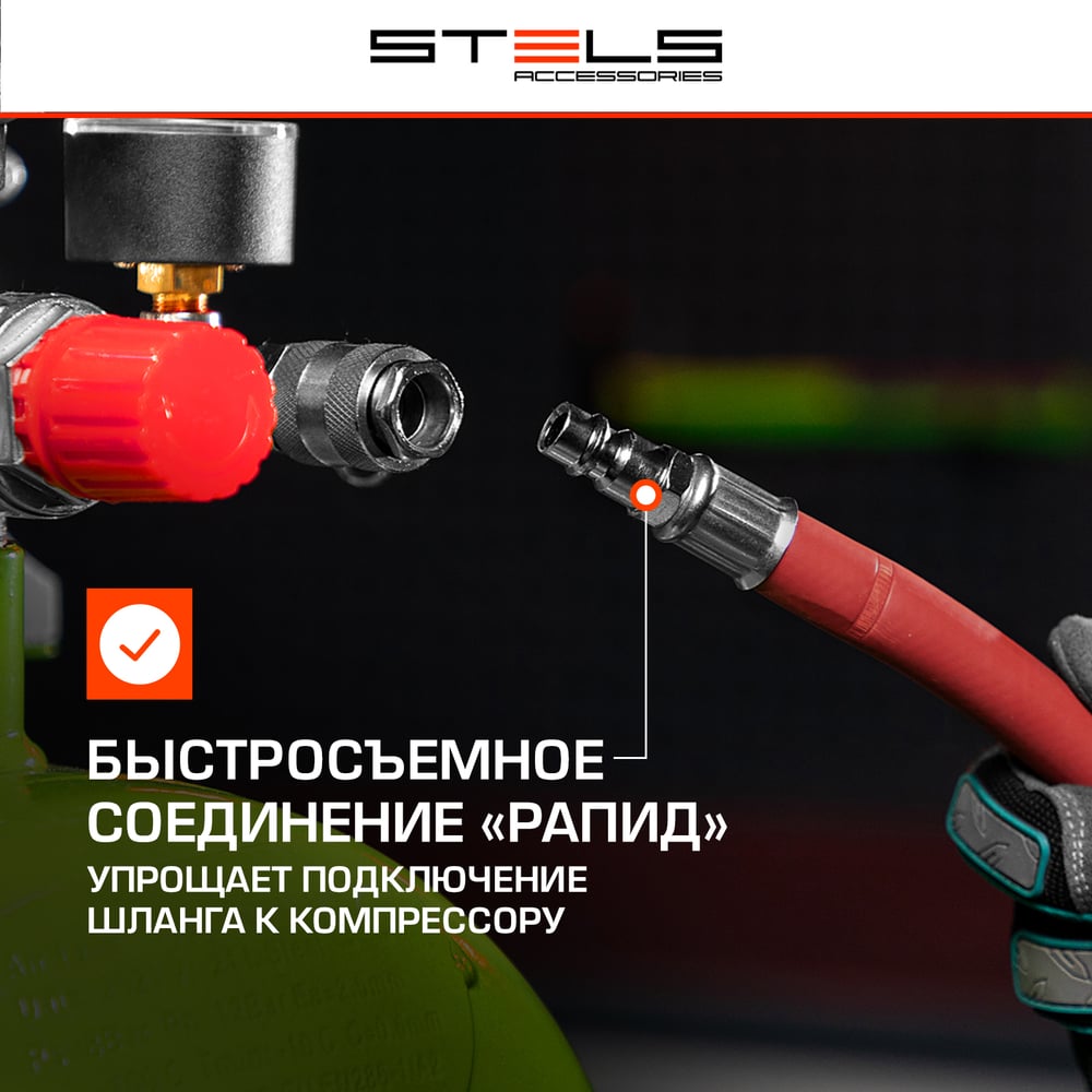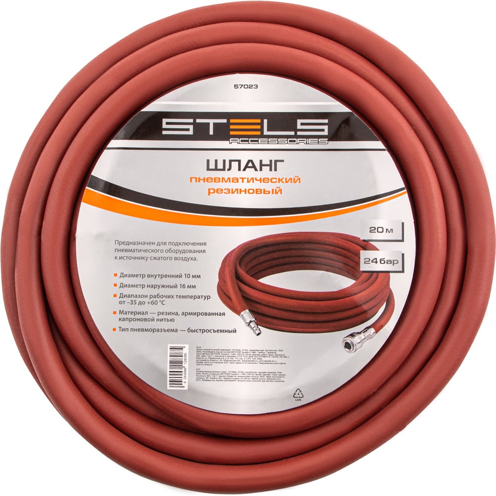 Шланг пневматический резиновый (10x16мм; 20 м; 24 бар) STELS армированный, быстросъем 57023