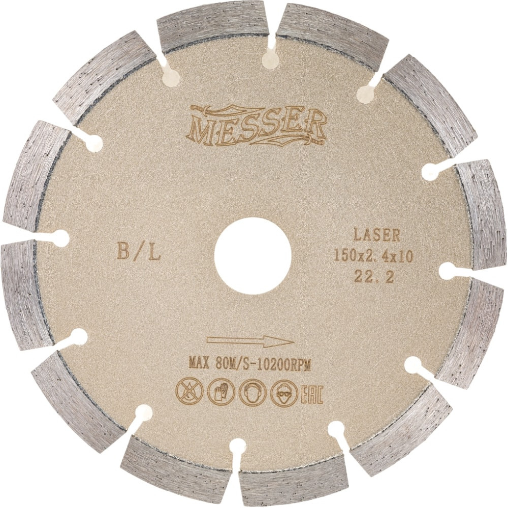 Диск алмазный сегментный B/L по бетону 150D-2.4T-10W-12S-22.2 MESSER 01-13-150