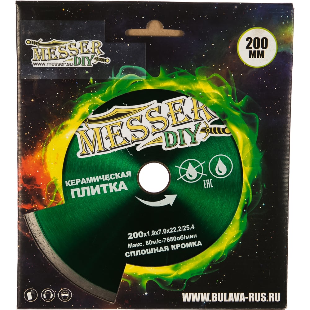 Диск алмазный сплошной по керамической плитке (200х22.2 мм) MESSER DIY 03.200.009