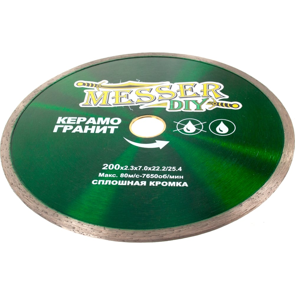 Диск алмазный сплошной по керамограниту (200х22.2/25.4 мм) MESSER DIY 03.200.008