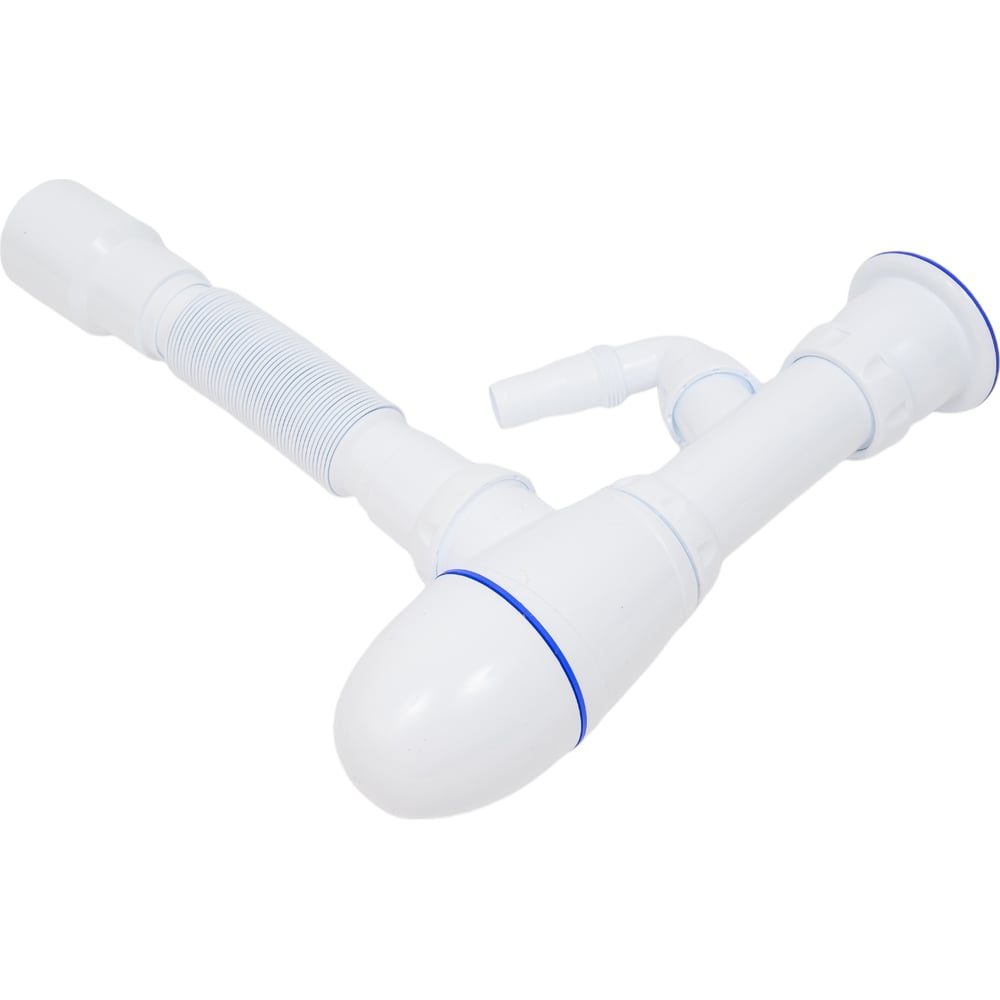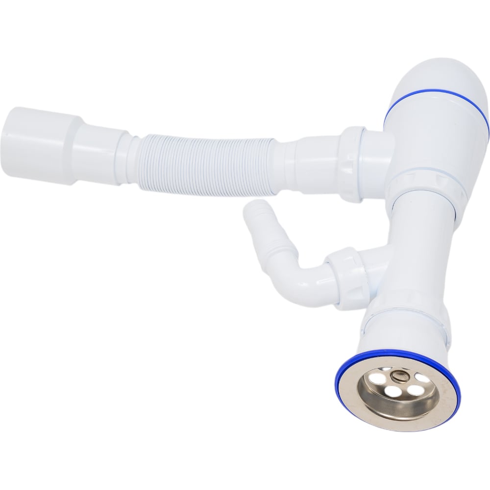 Сифон для кухни Unicorn 1.1/2"х40, нержавеющий выпуск, отвод для стиральной машины, с универсальной гибкой трубой, 40х40/50 B320V ИС.110315 533276