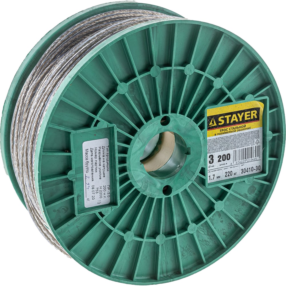 Стальной трос в полимерной оболочке STAYER 3 мм L=200 м 30410-30