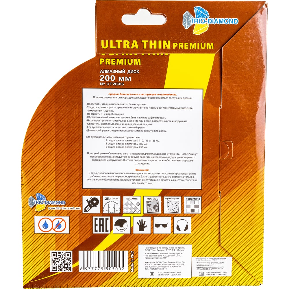 Диск алмазный отрезной TRIO-DIAMOND сплошной ультратонкий 200x25.4 Ultra Thin Premium UTW505