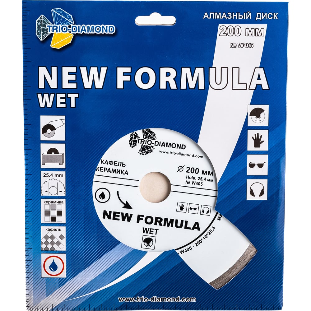 Диск алмазный отрезной TRIO-DIAMOND сплошной 200x25.4 New Formula Wet, W405