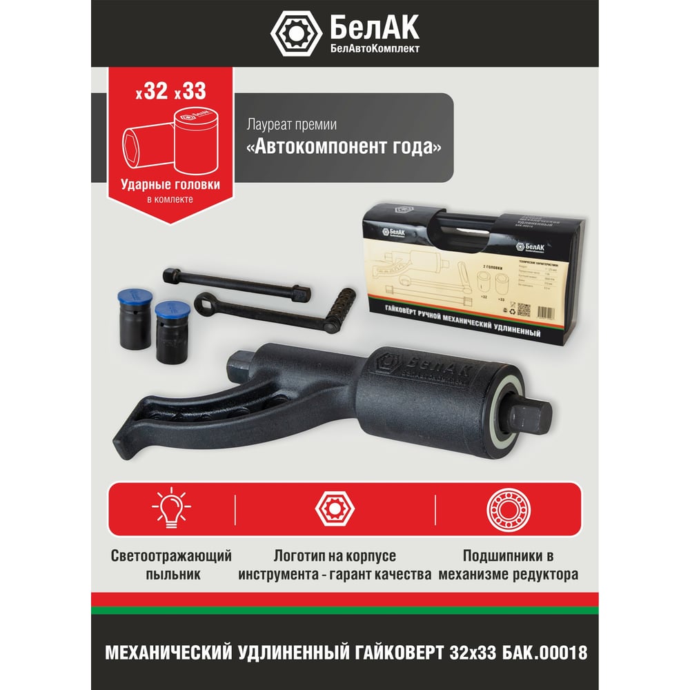 Механический удлиненный гайковерт 32х33 БелАК БАК.00018