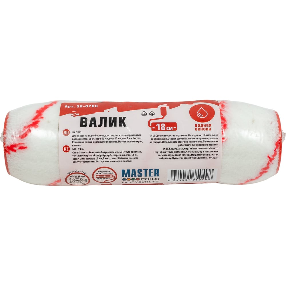 Валик, ядро 41мм, полиакрил, ворс 12мм, под 8мм ручку, 18см МASTER COLOR 30-0786